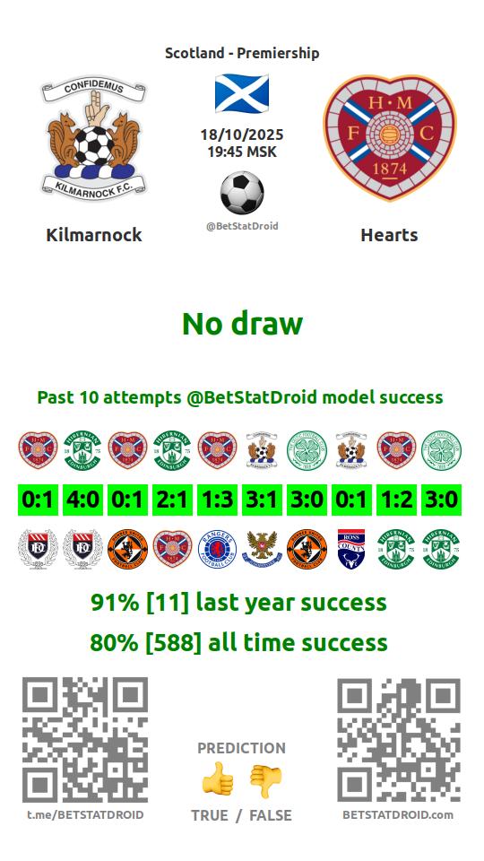 ✔ Kilmarnock scores under 2,5 goals in each of 11 last games