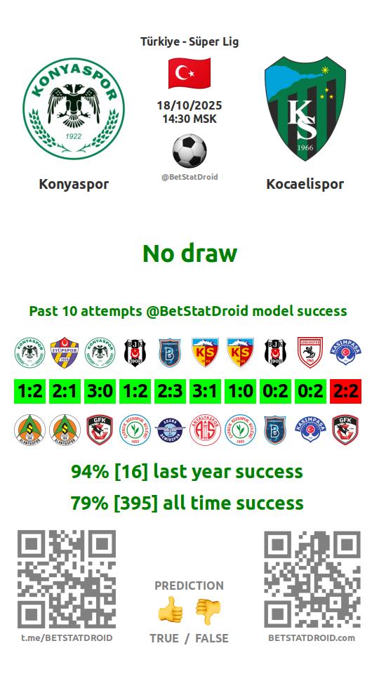 ✔ Konyaspor lost under 2,5 goals in each of 12 last games