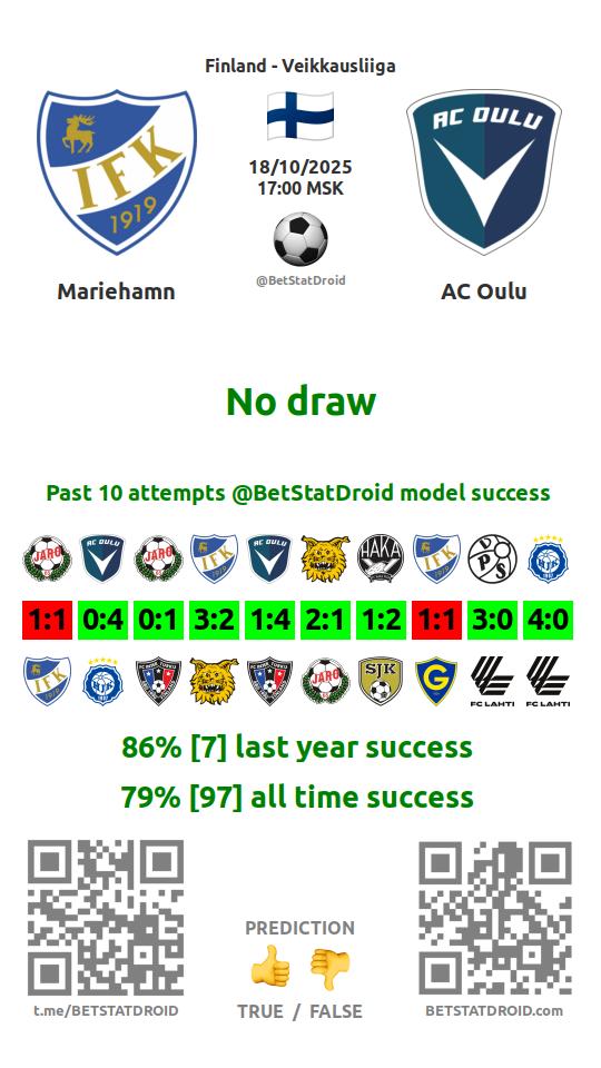 ✔ Mariehamn scores under 2,5 goals in each of 13 last games