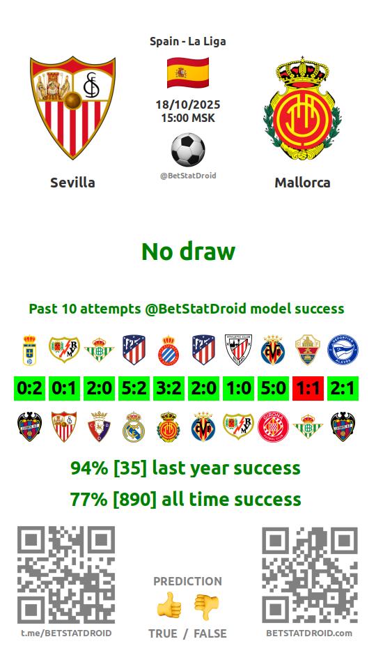 ✔ Mallorca scores under 2,5 goals in each of 16 last games