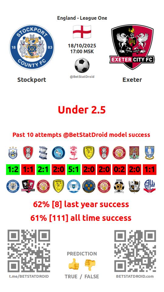 ✔ Stockport lost under 2,5 goals in each of 22 last games