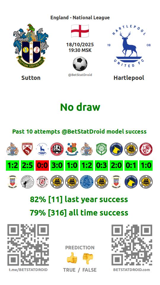✔ Sutton scores under 1,5 goals in each of 5 last games