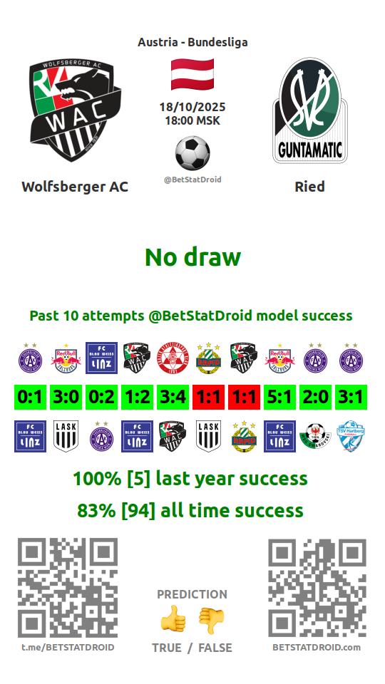 ✔ Ried scores under 2,5 goals in each of 12 last games