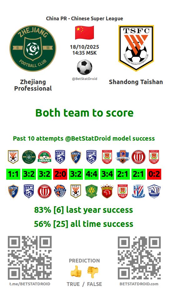 ✔ Zhejiang Professional scores over 1,5 goals in each of 5 last games
