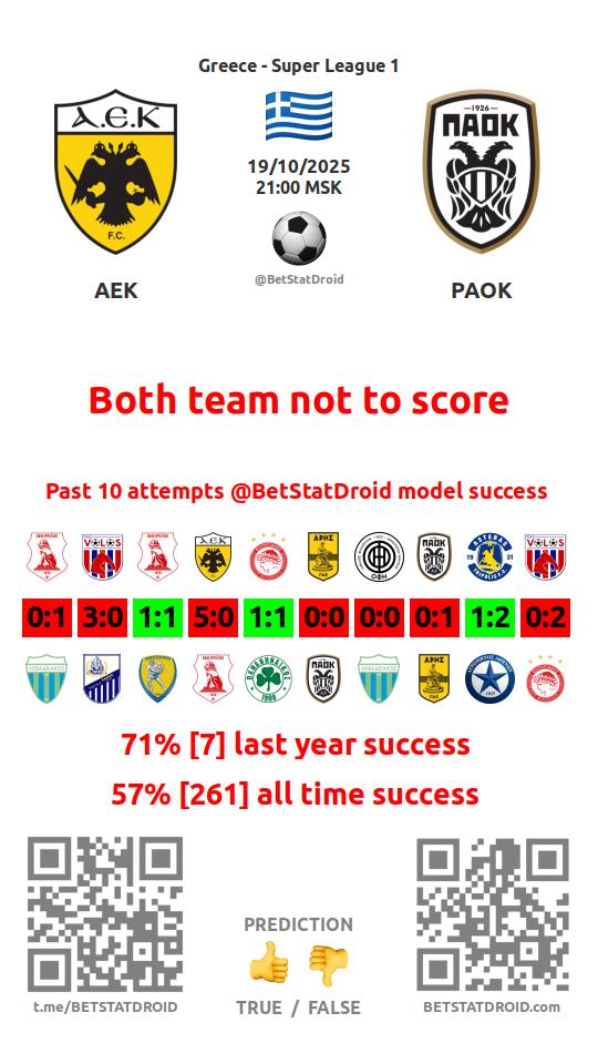 ✔ AEK lost under 2,5 goals in each of 10 last games