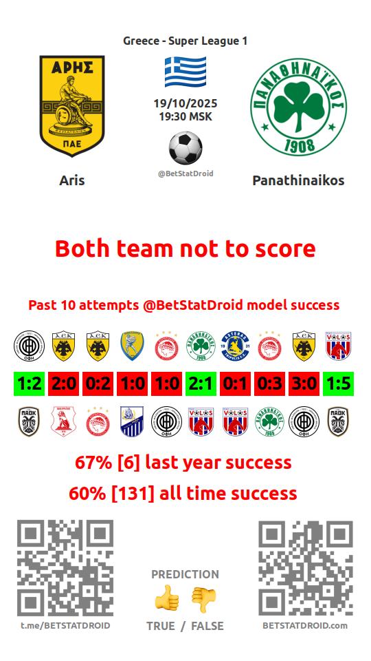 ✔ Aris scores under 2,5 goals in each of 10 last games