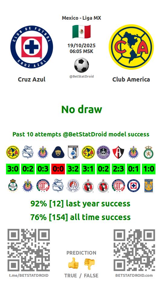 ✔ Cruz Azul lost under 2,5 goals in each of 10 last games