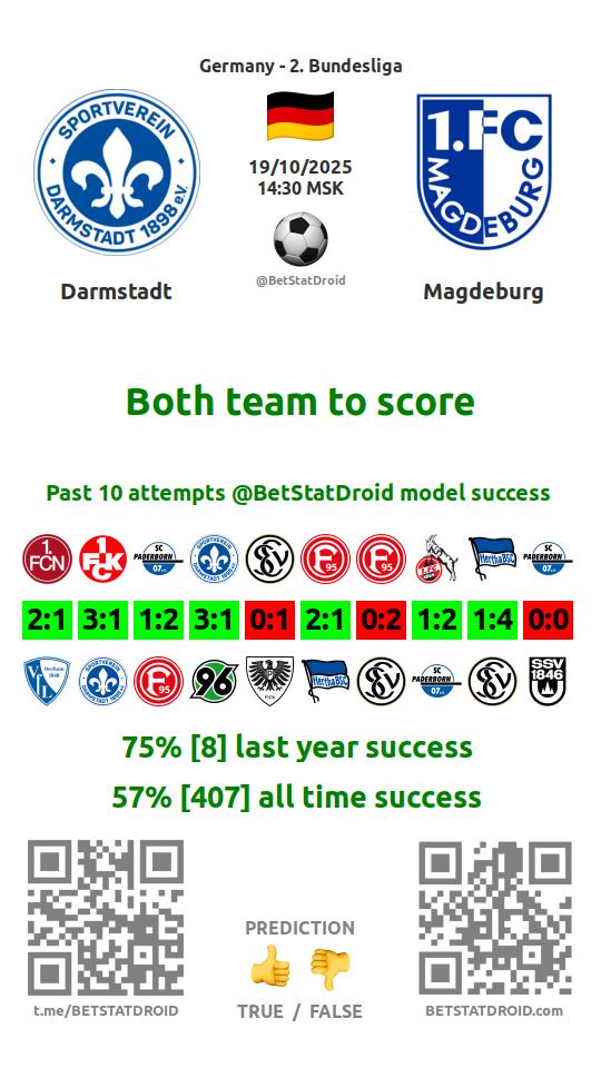 ✔ Darmstadt scores under 1,5 goals in each of 5 last games