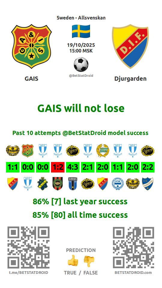 ✔ GAIS scores under 2,5 goals in each of 9 last games