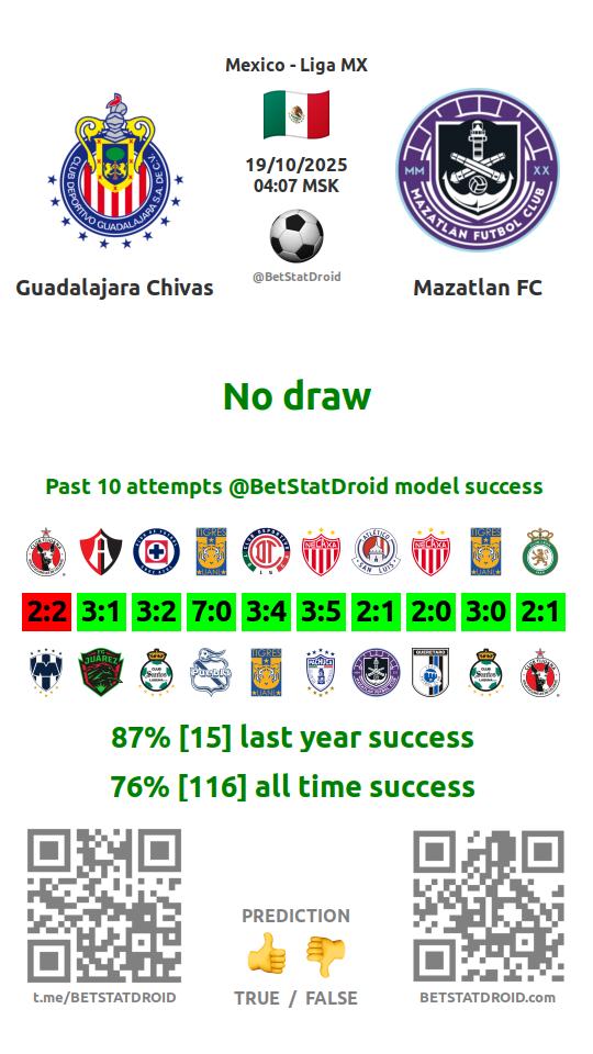 ✔ Mazatlan FC scores under 2,5 goals in each of 16 last games