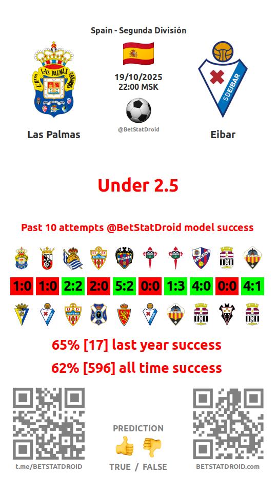 ✔ Las Palmas scores under 2,5 goals in each of 19 last games