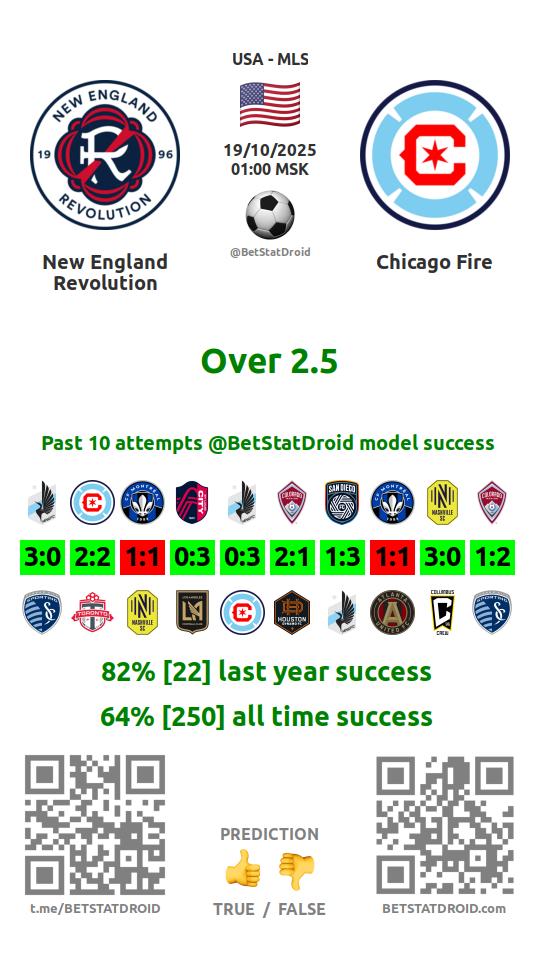 ✔ New England Revolution scores under 2,5 goals in each of 8 last games
