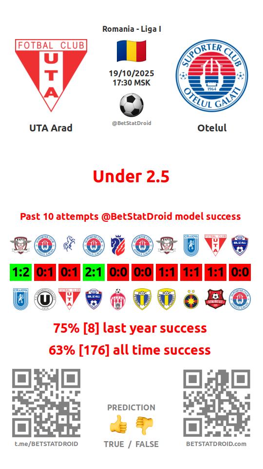✔ Otelul lost under 2,5 goals in each of 10 last games