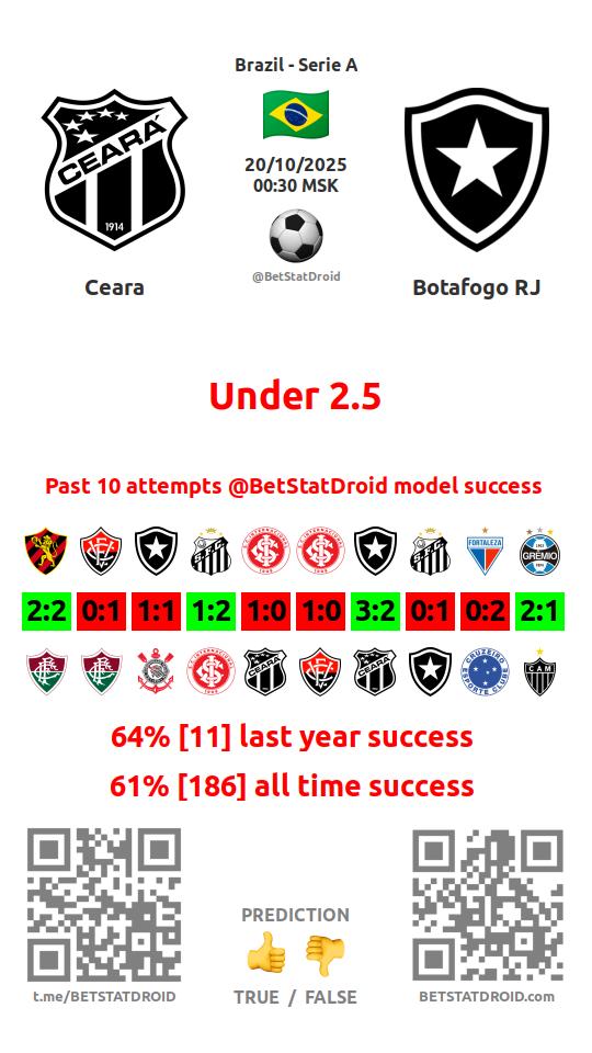 ✔ Ceara lost under 2,5 goals in each of 31 last games