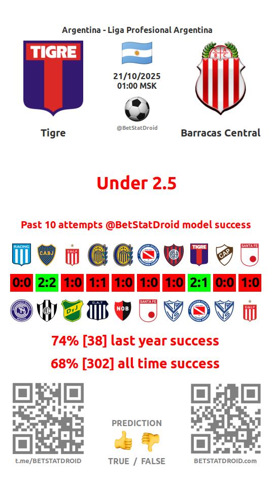 ✔ Tigre scores under 2,5 goals in each of 13 last games
