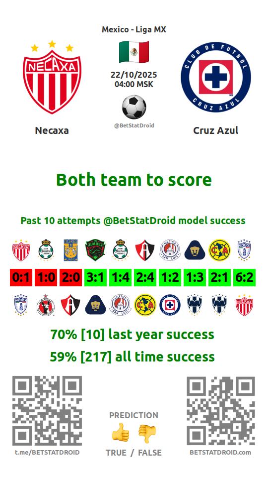 ✔ Necaxa scores under 2,5 goals in each of 9 last games