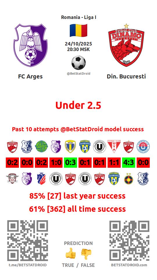 ✔ FC Arges lost under 2,5 goals in each of 17 last games
