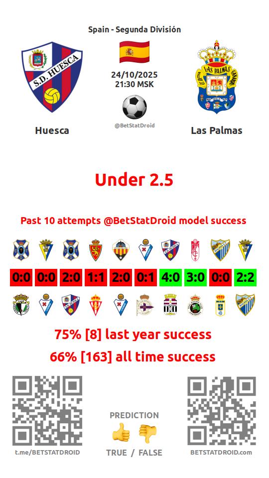 ✔ Las Palmas scores under 2,5 goals in each of 8 last games
