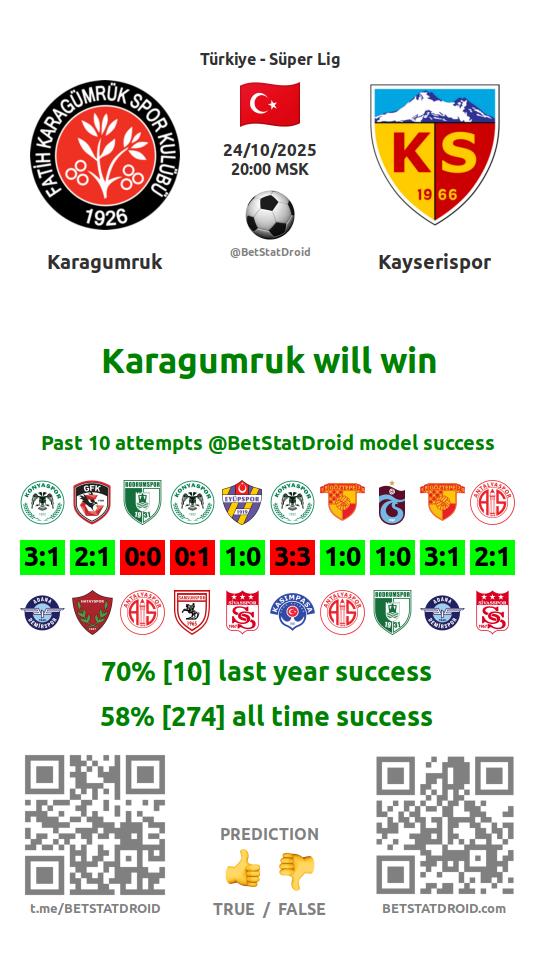 ✔ Karagumruk scores over 1,5 goals in each of 5 last games
