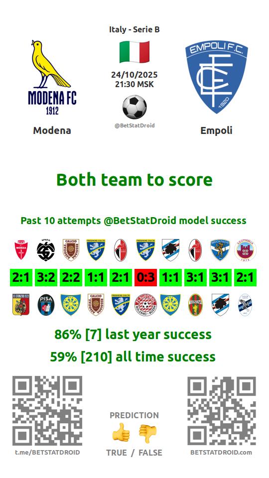 ✔ Modena lost under 2,5 goals in each of 11 last games