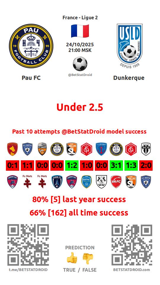 ✔ Dunkerque lost under 2,5 goals in each of 8 last games
