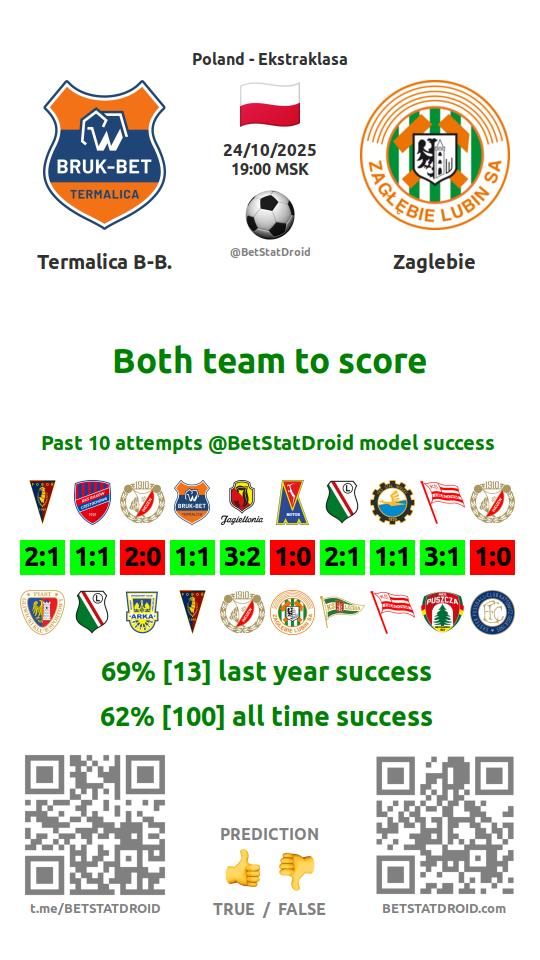 ✔ Termalica B-B. scores under 2,5 goals in each of 8 last games