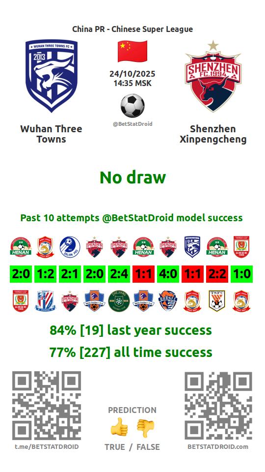 ✔ Wuhan Three Towns scores under 2,5 goals in each of 20 last games