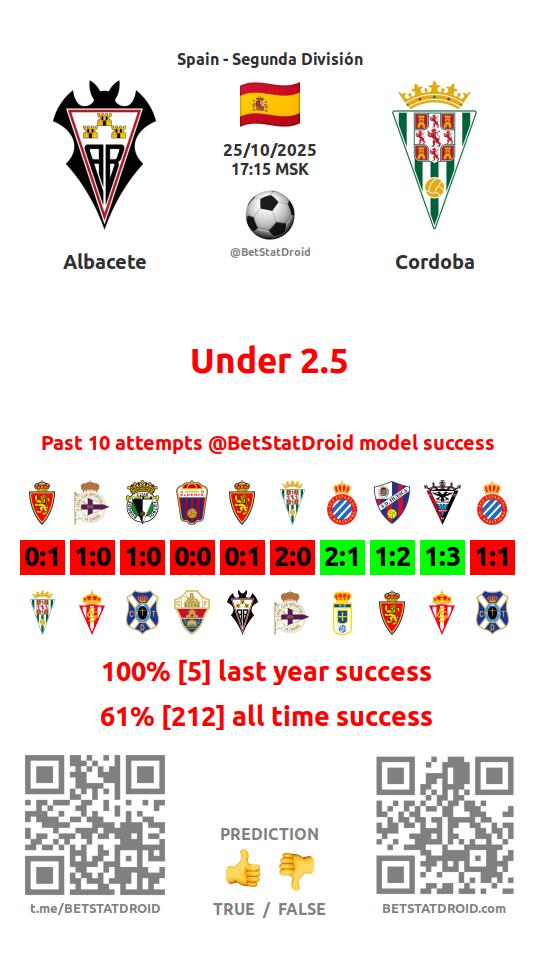 ✔ Cordoba scores under 2,5 goals in each of 12 last games