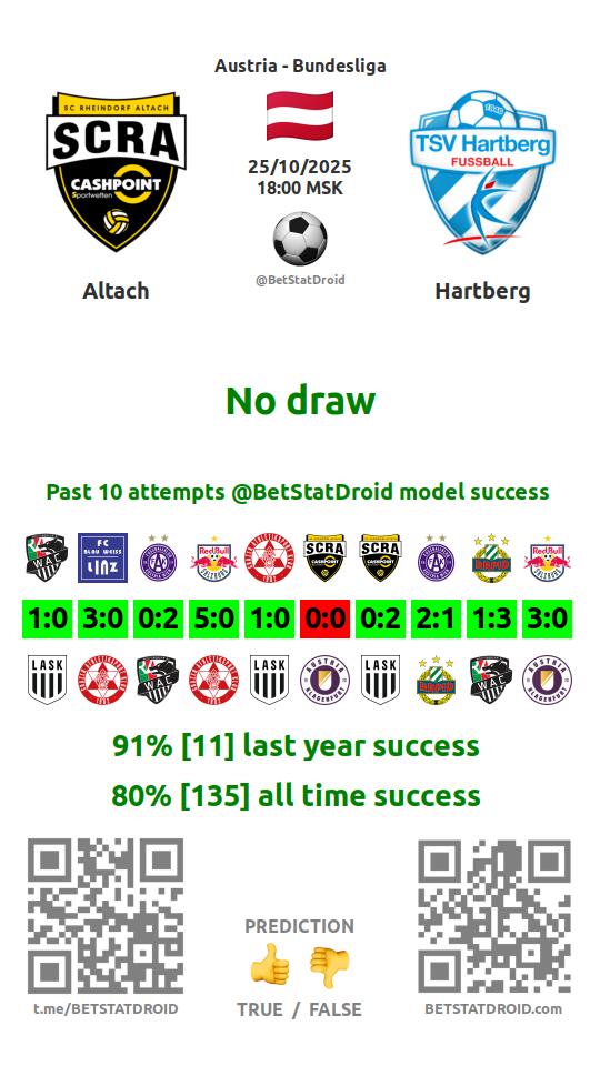 ✔ Altach scores under 2,5 goals in each of 19 last games
