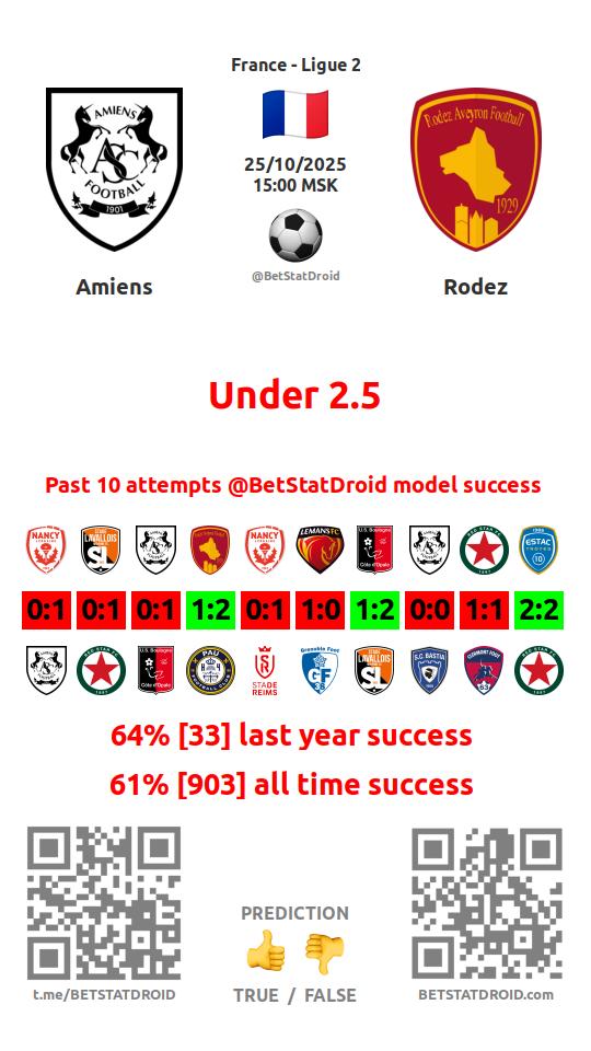 ✔ Amiens lost under 2,5 goals in each of 10 last games