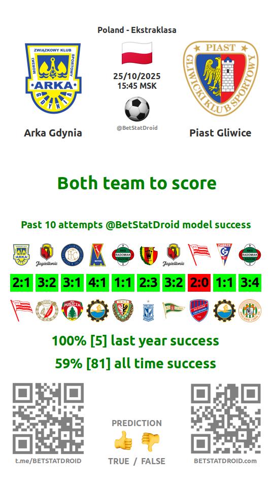✔ Arka Gdynia scores under 1,5 goals in each of 8 last games