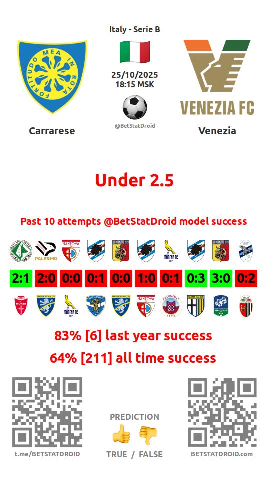✔ Venezia lost under 2,5 goals in each of 10 last games