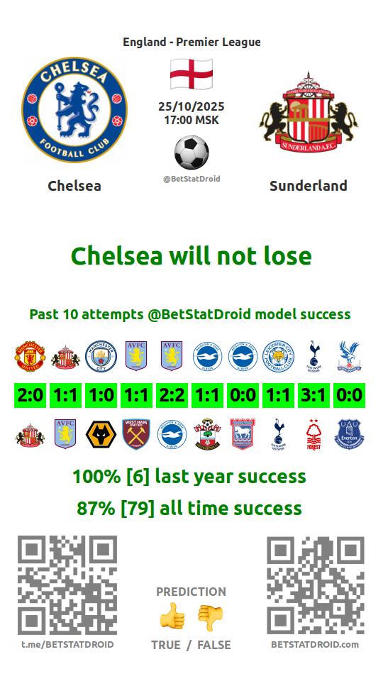 ✔ Sunderland scores under 2,5 goals in each of 11 last games