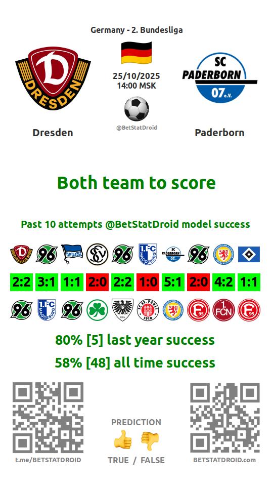 ✔ Dresden lost over 1,5 goals in each of 5 last games