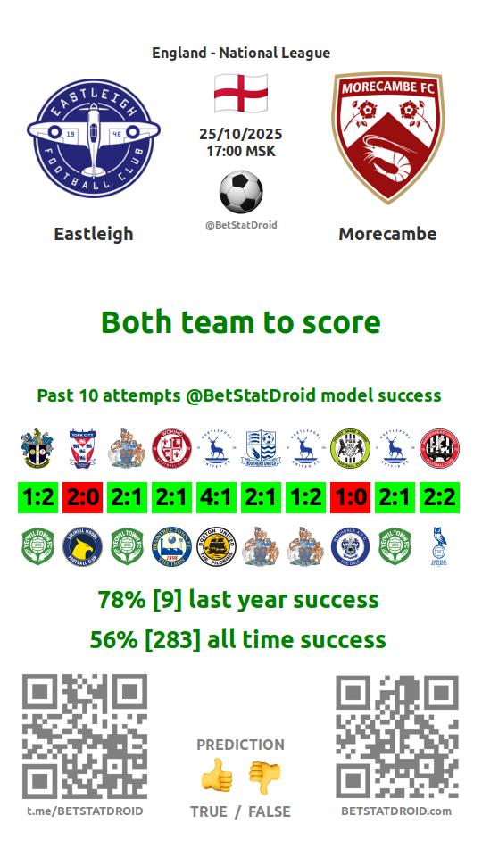 ✔ Eastleigh scores under 2,5 goals in each of 12 last games