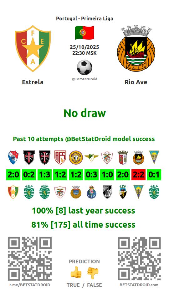 ✔ Estrela lost under 2,5 goals in each of 8 last games