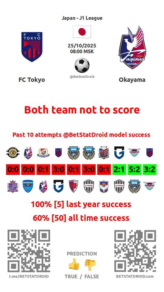 ✔ FC Tokyo scores under 2,5 goals in each of 10 last games