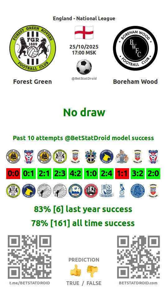 ✔ Forest Green scores under 2,5 goals in each of 8 last games