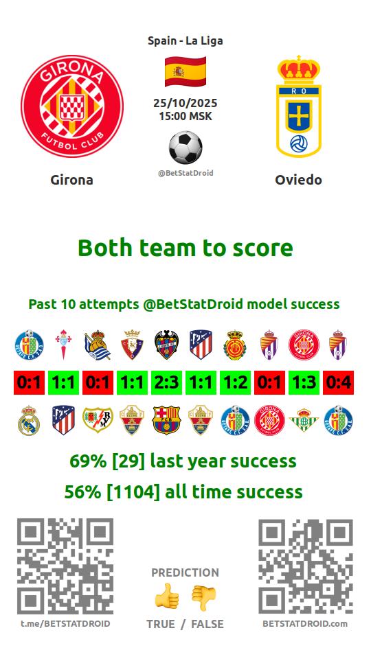 ✔ Girona scores under 2,5 goals in each of 15 last games