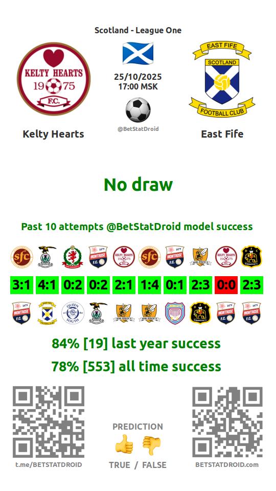 ✔ Kelty Hearts scores under 2,5 goals in each of 15 last games