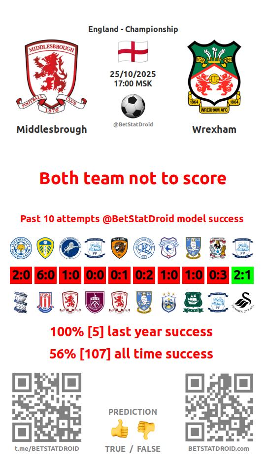 ✔ Middlesbrough scores under 2,5 goals in each of 16 last games