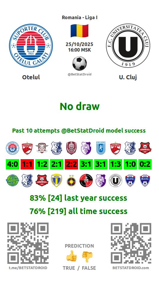 ✔ U. Cluj lost under 2,5 goals in each of 11 last games