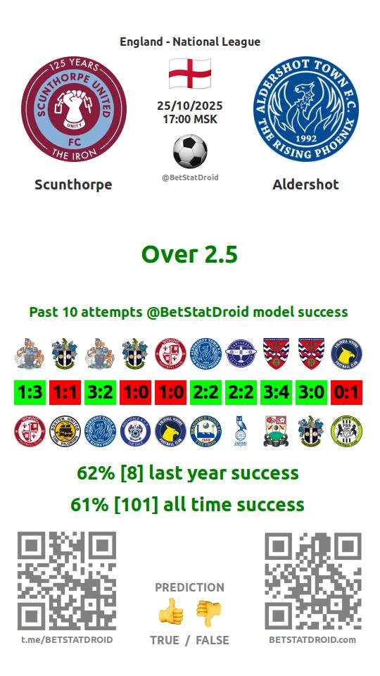✔ Scunthorpe lost under 2,5 goals in each of 16 last games