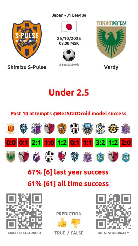 ✔ Verdy scores under 2,5 goals in each of 21 last games