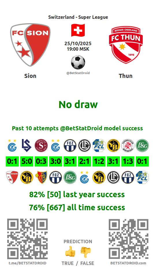 ✔ Thun scores over 1,5 goals in each of 5 last games