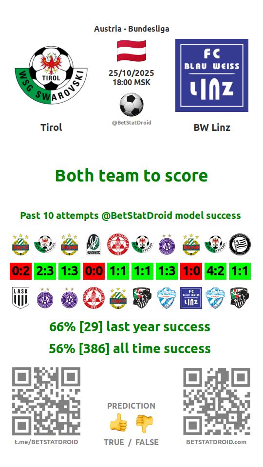 ✔ BW Linz scores under 2,5 goals in each of 33 last games