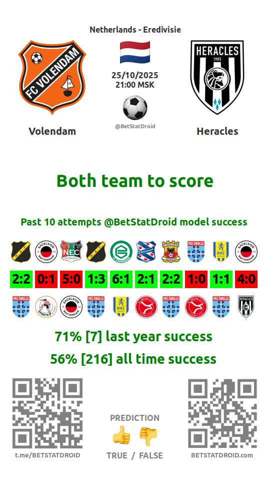 ✔ Volendam scores under 2,5 goals in each of 14 last games