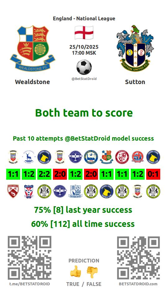 ✔ Sutton scores under 2,5 goals in each of 15 last games