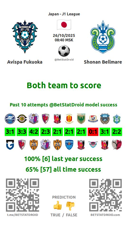 ✔ Avispa Fukuoka scores under 2,5 goals in each of 11 last games
