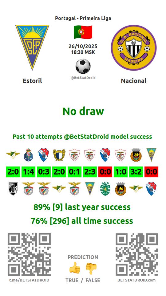 ✔ Estoril scores under 2,5 goals in each of 9 last games